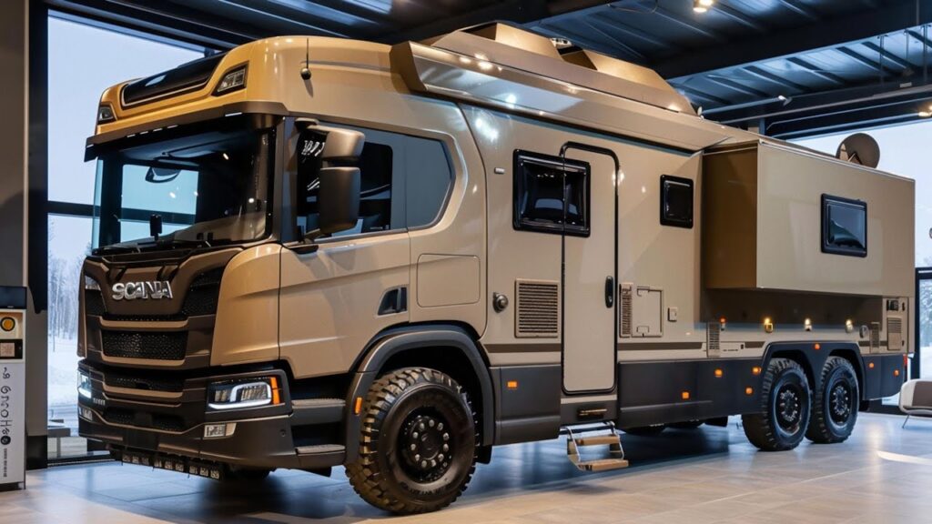 Scania, the Swedish heavy-truck powerhouse known for reliable haulers, has sparked massive online buzz with the “reveal” of the 2026 Scania DesertCruiser 6×6—a monstrous 6×6 expedition motorhome built for extreme off-grid travel. Videos and articles describe it as an armored luxury RV conquering deserts, mountains, and tundra, with a V8 diesel, self-sufficient systems, and opulent interiors. It’s gone viral on YouTube and blogs, promising the ultimate overland machine.